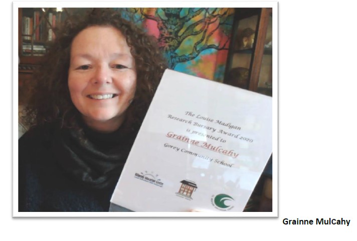 The recipients were congratulated by the Directors of the 3 hosting Centres, John O Sullivan, Kilkenny Education Centre, Lorraine O Gorman, Co Wexford Education Centre and Assumpta O Neill, Waterford Teachers Centre. John and Grainne both expressed their thanks and delight in being chosen as Bursary recipients for 2020 and also their appreciation to Louise’s family, her husband, Tom Carroll and children Cormac and Orla for the opportunity to benefit from this award in her name. In accepting her award Grainne stated ‘I am honoured to receive the bursary this year. Louise was a lovely person and it is humbling to receive the bursary in her name. Though a small comfort for her family, friends and colleagues, her memory is alive in the projects this bursary supports. In a very tangible way, she contributes to build a better world for students and teachers’ The former Director of WTC and Conference organiser, Dr Celia Walsh, congratulated John and Grainne and also paid tribute to Louise’s significant talents and skills and her friendship and good humour which are sadly missed by all Centre staff and teachers in the WTC region.