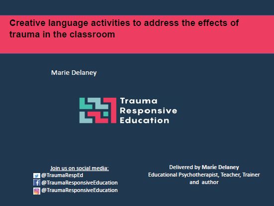 PRESENTATION: ` CREATIVE LANGUAGE ACTIVITIES WHICH HELP TO ADDRESS TRAUMA`, Marie Delaney, Educational Psychotherapist, Teacher, Trainer and author